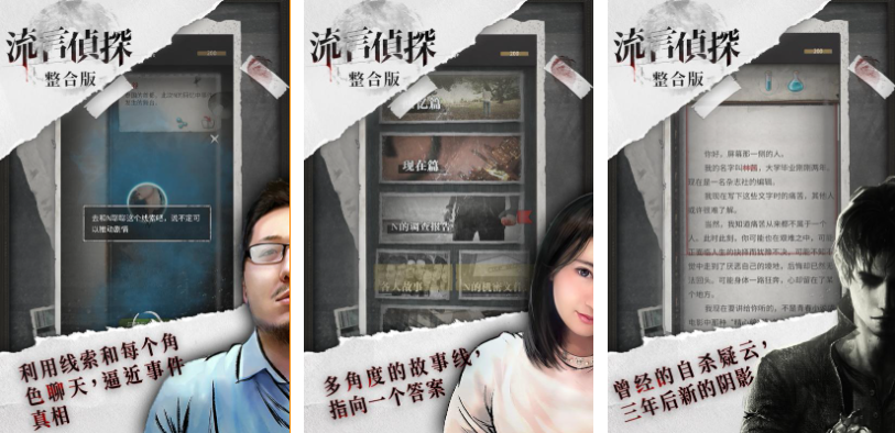 流言侦探是款将侦探小说与推理玩法融合的特殊手游,凭借紧凑的故事演绎给大家营造出写实环境,利用多样线索破解谜题的设定蛮有趣的,多线性故事与多角度推理的设定都是点睛之笔,翻页阅读文案的设定仿佛是一部可玩的小说,故事情节塑造十分精彩呈现出不同故事线,多样NPC的交流互动也会让大家掌握更多线索。