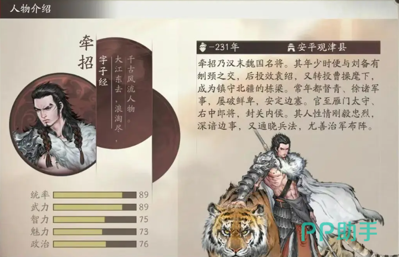 三国望神州中的牵招是一位备受关注的北疆猛将,历史上以忠勇著称,如今在游戏里也展现出不俗的战斗能力。自从官方透露其即将上线的消息后,玩家们纷纷关注他的技能设计与实战表现。本文将为大家全面解析这位武将的核心机制,帮助想要培养他的玩家朋友深入了解其作战风格和策略价值。