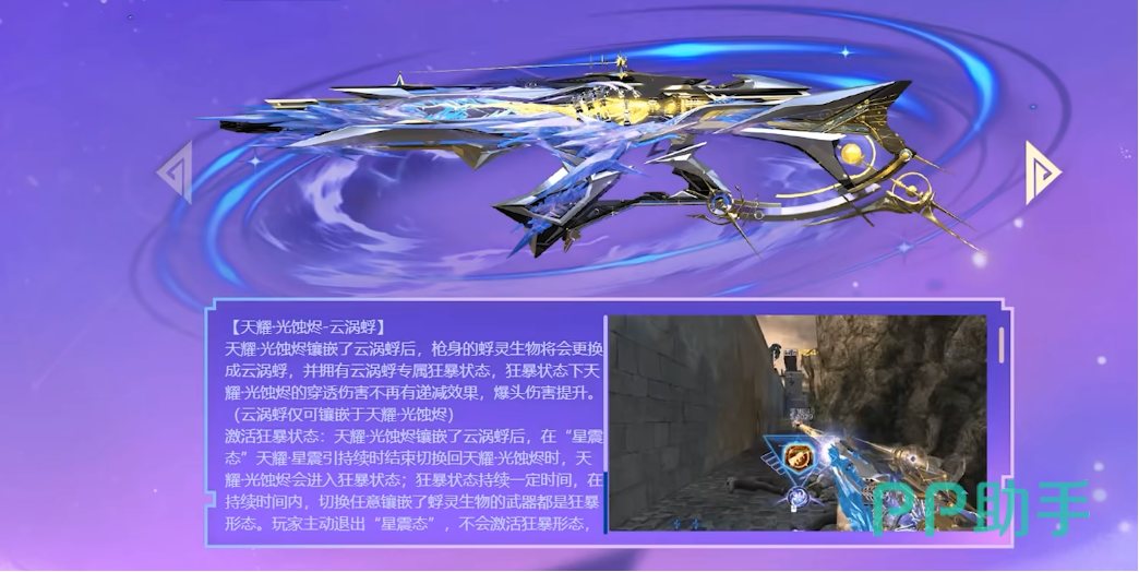 天耀套不仅属性强大,还具备独特的机制拓展功能。装备齐全后,玩家可通过按下“X”键进入【星震引】形态,此时主武器将切换为持续激光攻击模式,对目标造成稳定的范围伤害。若同时拥有专属宠物玄耀灵汐,即可解锁天耀蜉灵核心的镶嵌权限。每位蜉灵均对应特定武器类型,将其嵌入相应武器后,可激活该武器的狂暴状态,大幅提升其作战效能。
