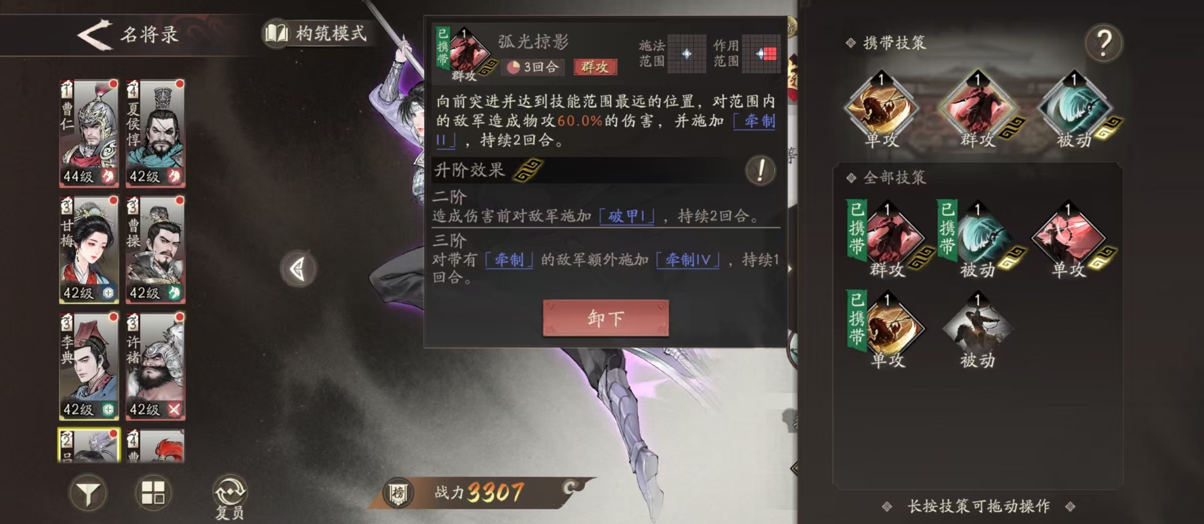 弧光掠影是一项群体控制技能,理论上最多可影响九个目标,升至二阶后还会附加破甲效果,显著提升团队整体输出效率。而流星赶月在进阶到二阶后,可对目标施加封印状态,持续一个回合,有效限制敌方关键单位行动。在副将选择上,朱灵是最佳搭档人选。其天赋规定:若本回合移动距离超过三格,可获得50%的物理防御加成。鉴于吕玲绮常态下移动频繁,几乎每回合都能稳定触发此增益,相当于为其提供了1.5倍的物防保障,大幅改善了其生存短板。