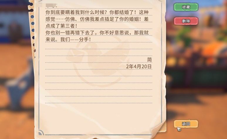 《沙石镇时光》作为一款融合模拟经营与恋爱养成元素的休闲游戏,玩家在经营农场、建设小镇的同时,还能与多位性格迥异的异性NPC建立深度情感联结。当好感度达到特定阈值后,即可正式确立恋人关系。但这段关系并非牢不可破——若处理不当,系统将触发“分手信”机制,标志着亲密关系的终结。