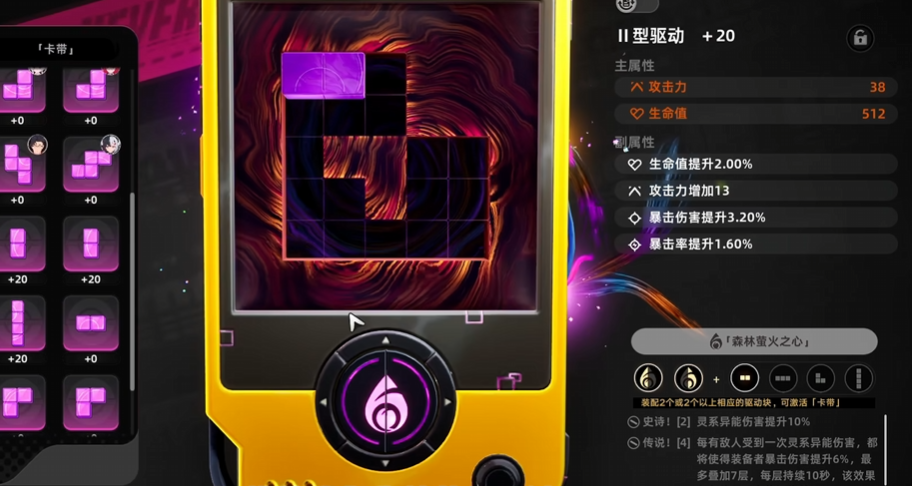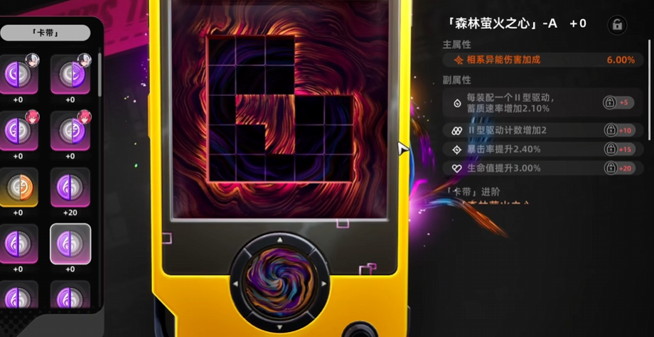 驱动块的最终定位需兼顾两项关键指标:一是确保其所在格位能完整承接卡带协议所指定的加成路径;二是通过微调位置使多枚驱动块之间形成属性叠加共振,从而最大化副属性成长效率。需特别说明的是,空幕的主属性在初始阶段即已锁定,不可更改;副属性则需通过升级空幕至指定等级后逐步解锁,并随驱动块配置完善而持续强化。