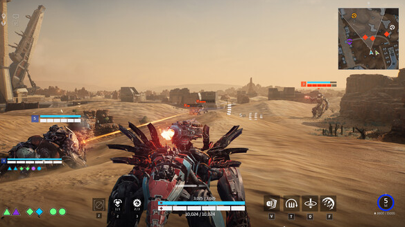 游戏中玩家可以选择双人组队的形式,例如和其他的5个队伍在这里去战斗,当然也可以选择单人战斗。无论选择什么样的战斗,整个游戏的体验感都是很不错的,玩家主要的任务就是将对方的机甲摧毁。在整个过程中就需要利用建筑物作为掩护,能轻松的抵挡对方的火力。