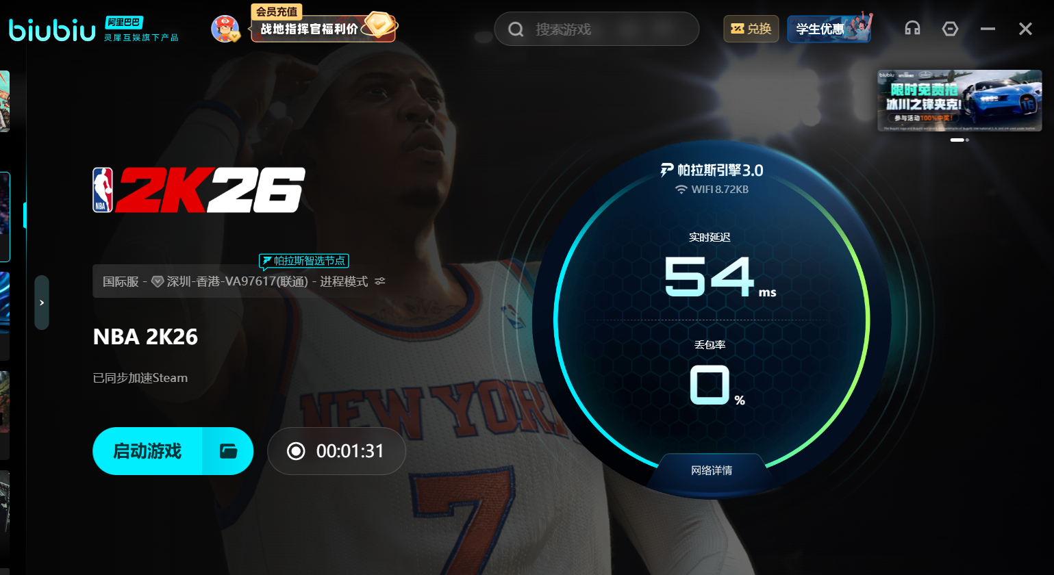 目前,biubiu加速器与著名冠军选手Aixleft合作完成重磅升级,引入了帕拉斯引擎3.0技术。这是专为大型游戏环境设计的智能加速平台,通过深度学习算法分析网络波动,主动规避常见的丢包和延迟问题。该引擎针对NBA2K26等数据密集型游戏进行了深度优化,帮助玩家在关键对战时避免卡顿,保持高帧率表现,显著提升整体游戏体验。