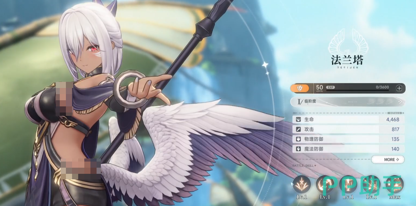 法兰塔具备一对明显的翅膀,能够在空中漂浮,但现阶段并不能实现完全自由飞行,仍需依赖坐骑进行移动。从表现来看,翅膀更多承担的是外观装饰作用,实际飞行功能可能在公测阶段有所调整。她是风属性角色,战斗定位为持续输出型物理伤害角色,擅长通过累积并消耗“失序层数”来释放高爆发伤害。其基础普攻为主要输出手段,同时具备较高的生命值和双防能力,在站场输出时较为稳定。