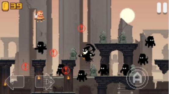 以独特的像素风为主,还融入了大量的冒险元素,此游戏中将很多冒险的玩法巧妙结合,比如有超级马里奥等等。主要讲述的就是背后有一个黑色的大影子,一直追击着玩家,玩家要通过到处收集金币以及各种道具的方式,快速躲避影子的追击。但在奔跑的过程中,也会沿途出现各种障碍物,玩家可通过跳跃以及移动等,多种方式跨过障碍物完成挑战。