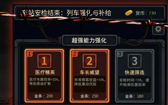本作核心机制围绕“高压安检系统”展开——每抵达一个停靠站,形形色色的幸存者将聚集月台,眼神中交织着渴求、疲惫与难以辨别的异样。身为列车长,你需手持便携式检测仪与红外体温枪,在无明确感染标识的前提下,仅凭微表情、行为细节与直觉完成快速筛查。车厢空间有限、物资极度紧缺,你必须实时决策:谁可登车?谁须隔离?谁应优先安置?整套列车生存管理系统高度拟真,涵盖人员编组、资源配比、舱室功能分配等多维维度,还原末日环境下每一寸空间与每一单位资源的战略价值。