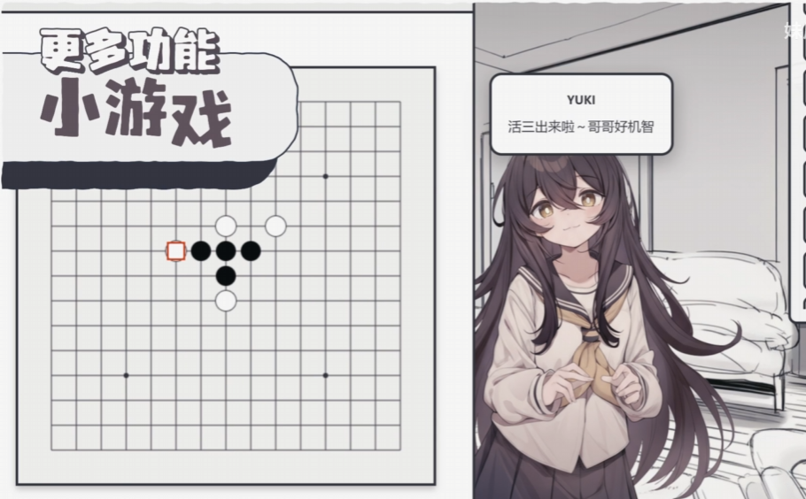 日常互动形式丰富多元:支持语音转文字聊天、原创故事共编、五子棋对弈等轻量玩法;赠送礼物系统与好感度成长曲线深度绑定,不同物品将触发差异化反馈,推动关系层级演进。