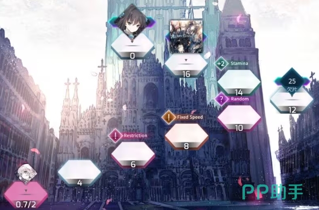 大家跟随主线来闯关可以获得海量的新歌曲,丰富音乐库,同时珍贵的残片、神秘的以太之滴以及关键的觉醒材料也会随着进度逐渐逐渐积累起来,它们都是提升角色实力和推动游戏进程的重要资源,新手在爬梯的过程中,有几个特殊的格子需要格外留意,那就是限曲格、限速格和体力格,它们对玩家的策略和操作提出了更高的要求。