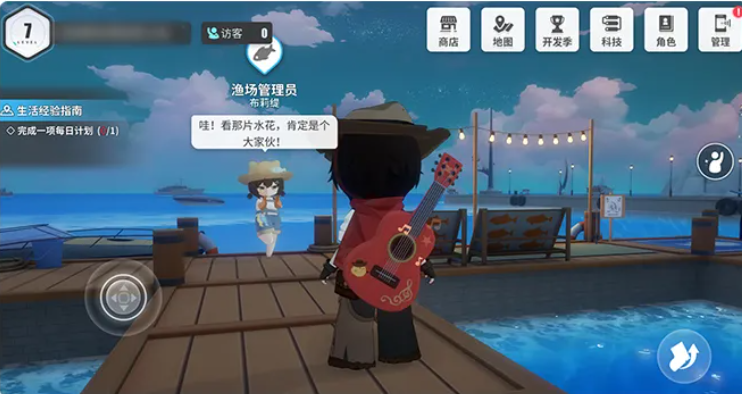 钓鱼玩法落地于港口渔场,全场景共设多个可交互钓点。玩家可通过科技升级鱼竿性能,或更换适配鱼饵提升目标鱼种出现概率;收竿时机需精准把握,失误或超时将消耗体力值。所获鱼类部分支持鱼肉加工,经由餐馆系统转化为餐品原料,反哺岛屿日常供给体系。