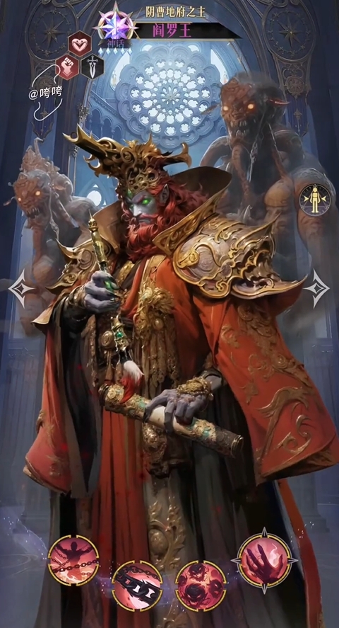 很需要在实战中利用站位来触发开局机制的一名角色,能在开场后立刻将对位的角色拉过来并强控住他,能无视除无法选中外的一切解控手段,让阎罗王成为了不朽箴言里最好用的单体控制之一。敌人在攻击阎罗王时,还会因他的能力而损失掉能量,开启大招的速度也会因此变慢。