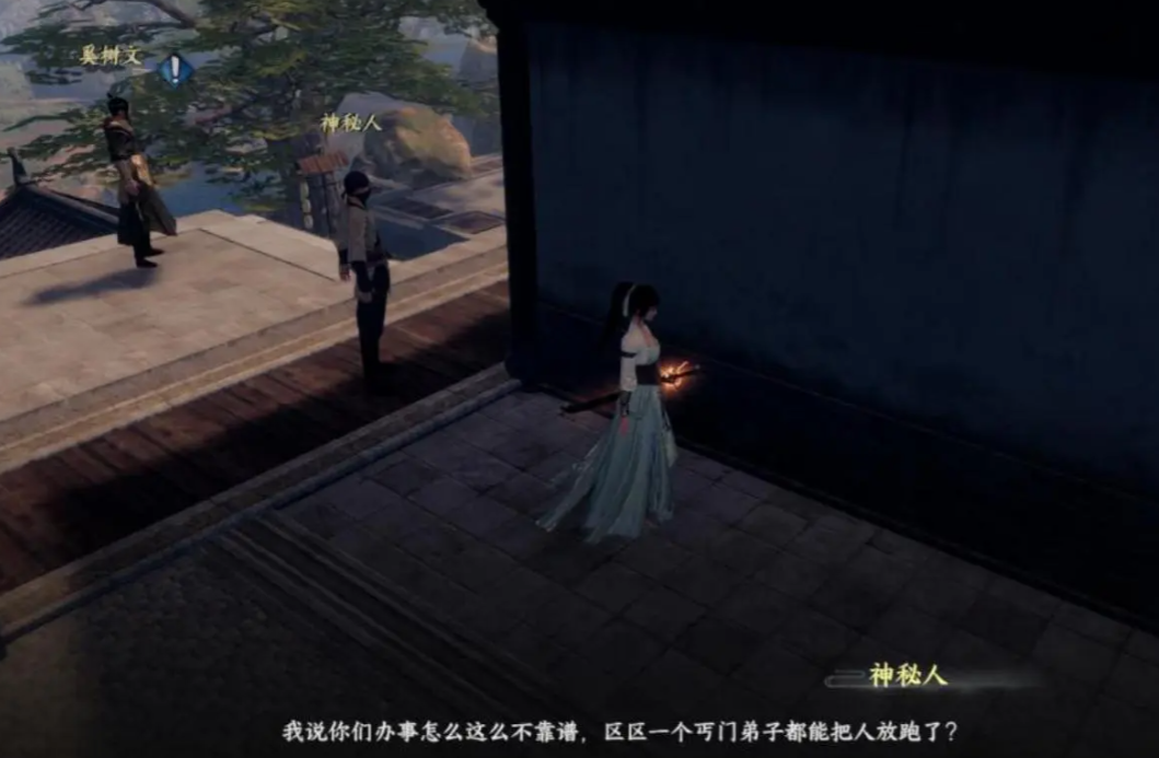在提供治疗后,前往990.273坐标区域,接近后将自动播放一段剧情,内容为两名神秘人之间的交谈。通过这段对话,可以获取他们正在追捕丐门弟子的重要信息,这是后续推理的关键线索之一。