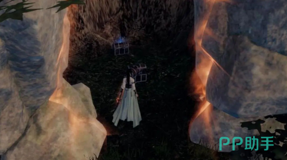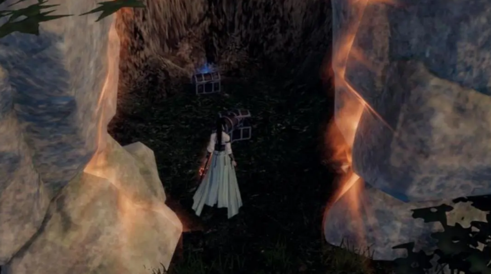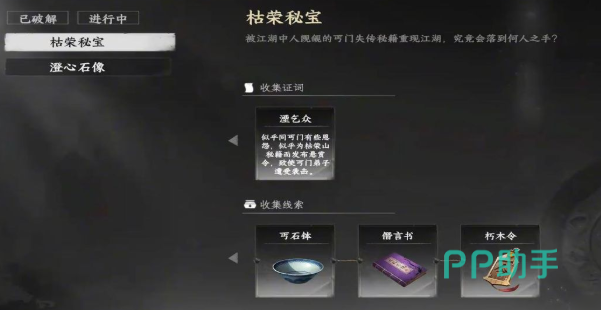 接下来进入解谜环节,需将已获得的两条线索进行逻辑整合。正确的推理路径应选择最后一个结论选项,其余选项可用于排除错误推论。完成推理后,系统将提示枯荣秘宝入口位置——坐标477.294。到达该地点后可见一处散发金光的石壁,与金光交互即可开启隐藏石门,进入后便可取得密云不雨诀以及三阶武器“千峰”等多项珍贵奖励。