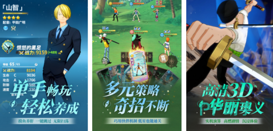 以3d的手法进行设计,为玩家带来了特别逼真的航海场景,您将要化身成为优秀的航海王,在广阔无边的大海当中展开独特的航海冒险之路。这游戏也竖屏的形式进行展现,利用单只手指就能完成操作,这里还有人们耳熟能详的人物角色,比如路飞等人,无需太复杂的操作方式,就能展现出华丽的技能体系,在伟大的航海之路上打造出自己的成就。