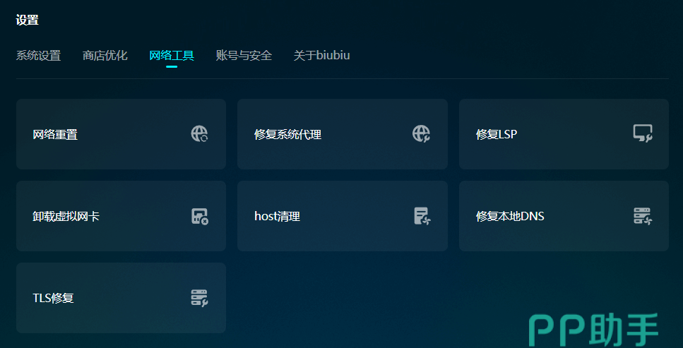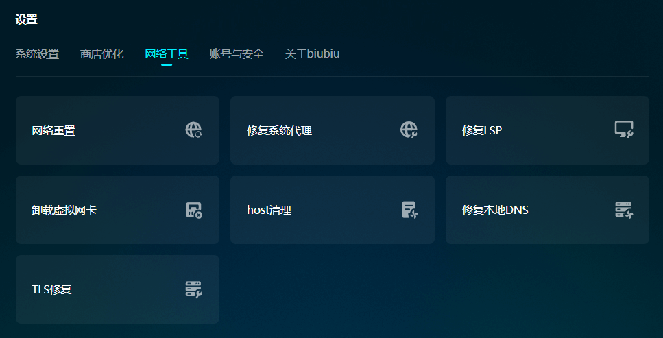 想要提升加速效果,或者电脑网络还有其他问题的,还能用biubiu提供的工具箱修复、优化网络环境,它可以清理堆积的虚拟网卡,修复好本地的DNS。用户还能调整客户端的大小,以及把软件缩小到后台去加速,这样就不会影响自己的游戏操作了。