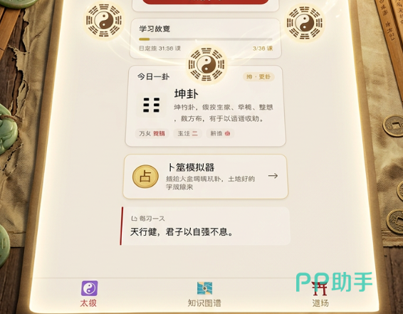 技术层面支持全进程自动存档,中断后可无缝续玩;UI设计贯彻“少即是多”理念,将八卦符号抽象为视觉语言,主色调采用低饱和度青灰、檀褐与素白,营造静观沉思的沉浸氛围。新增“每日一卦”功能置于首页入口,用户每日可抽取当日专属卦象,结合简明释义与生活化建议,降低认知门槛,让古老智慧真正融入日常节奏。