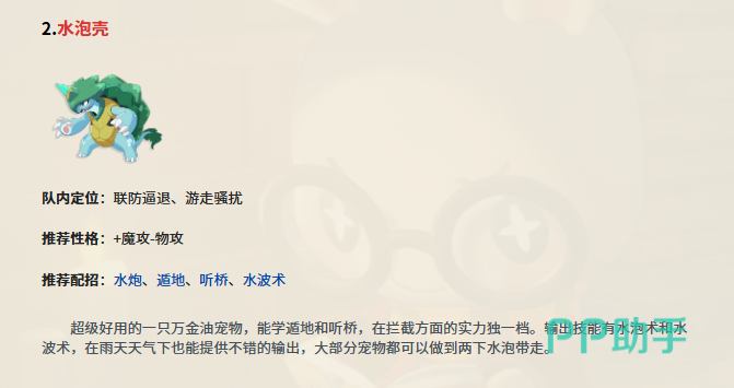 当敌方阵型完整、坦度较高时,可启用“水泡壳”作为小独角兽的专属装备配置。该道具在应对高防御单位时具备显著破防价值,尤其在敌方输出集中阶段,能提供关键伤害规避能力。同步搭配“水泡”技能,在雨天环境下可进一步放大水系技能倍率,提升连击稳定性与输出连续性,使水队在多段技能循环中始终保持压制主动权。