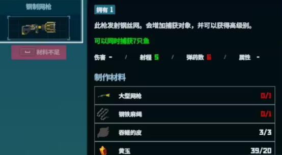 首先小编要介绍的第1种方式,那就是通过收集材料的方式到商店中购买,因为在制作钢制网枪时,需要三张吞鳗的皮,这种材料相对来说比较稀缺。因此玩家要在偌大的海洋当中率先捕捉吞鳗,完成这项任务之后,就能收集大量的材料,也可利用这些材料到商店当中进行购买。
