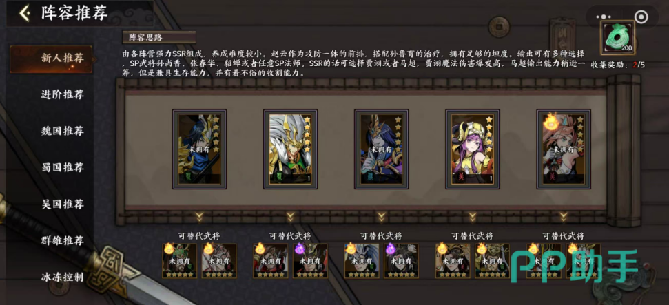 需特别提醒:所有阵容的实际强度不仅取决于武将个体数值,更与阵营羁绊、兵种适配、技能等级及装备词条深度绑定。建议玩家在组建阵容前,优先查阅当前版本羁绊激活条件(如「五虎上将」「魏国魔将」等),结合自身武将池进行动态调整。合理规划资源分配,避免盲目追求SP武将而忽视基础战力积累,方能在《群英打三国》的长期征战中稳步提升综合实力。